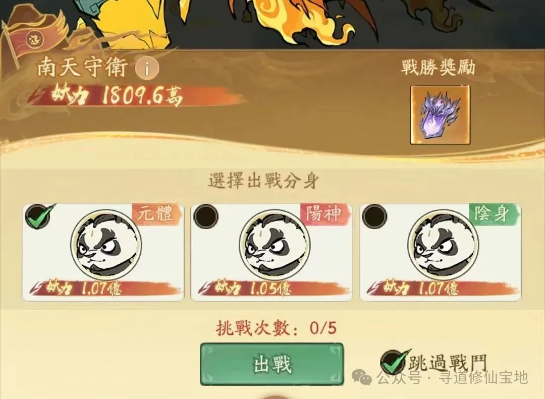 天兵难度:4766.37万,每次胜利可获得灵元240。
