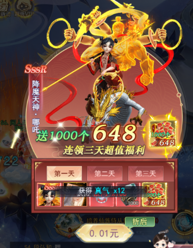 1、首充仅需0.01元送1000个648更有海量资源等你领取