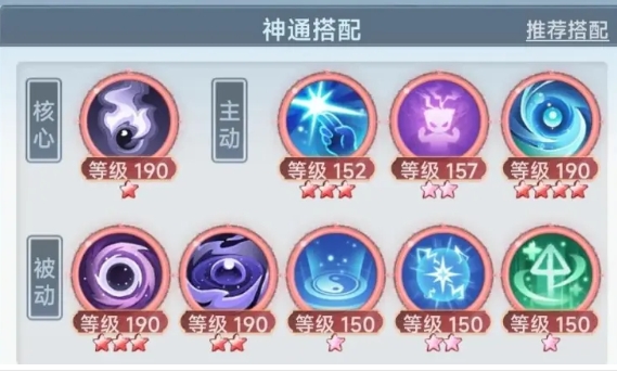 核心神通:无量法经。主动神通:吾即天命、元磁感应、天雷灌体。注:这套技能重点在于用核心神通打伤害,【吾即天命】必上,【元磁感应】提高100%核心神通暴击,【天雷灌体】巨量提升核心神通伤害,没有任何争议。